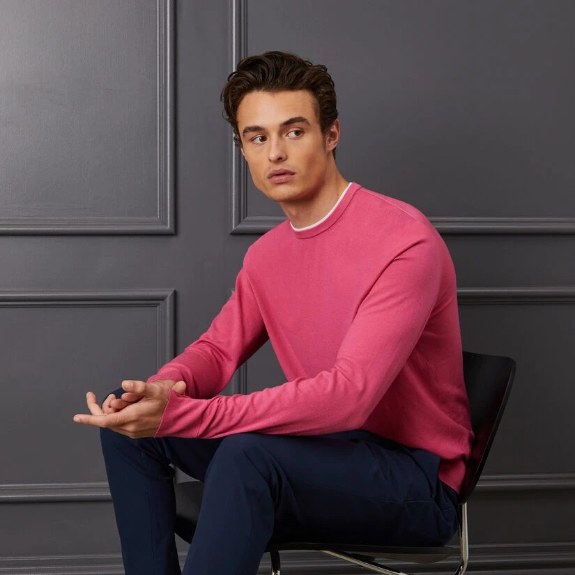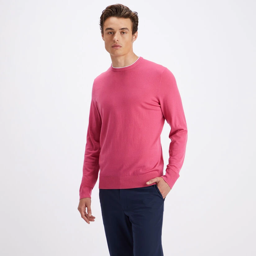 KEEP IT CLASSIC WITH THE CONTRAST MERINO WOOL BLEND CREWNECK SWEATER. MADE TO EASILY LAYER OVER A POLO OR WEAR ON ITS OWN TO ELEVATE YOUR STYLE. THIS DESIGN FEATURES CONTRAST TIPPING AS WELL AS RIBBING AT THE HEM, CUFFS, AND COLLAR. G4MS23S300