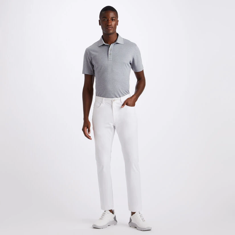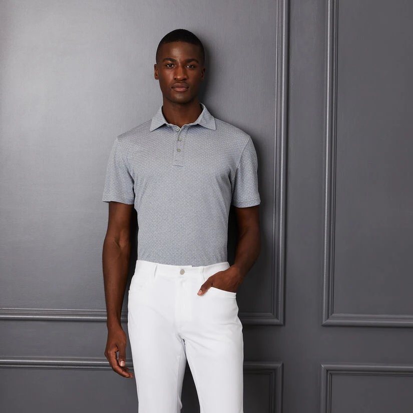 STAY CLASSY. THE DOT JACQUARD POLO FEATURES A STAPLE DESIGN, TENNIS TAIL HEM, AND COLLAR STANDS FOR A POLISHED LOOK, WHILE THE MATERIAL BOASTS MOISTURE WICKING PROPERTIES AND EXTRA BREATHABILITY FOR WARM DAYS ON THE COURSE. G4MS23K362