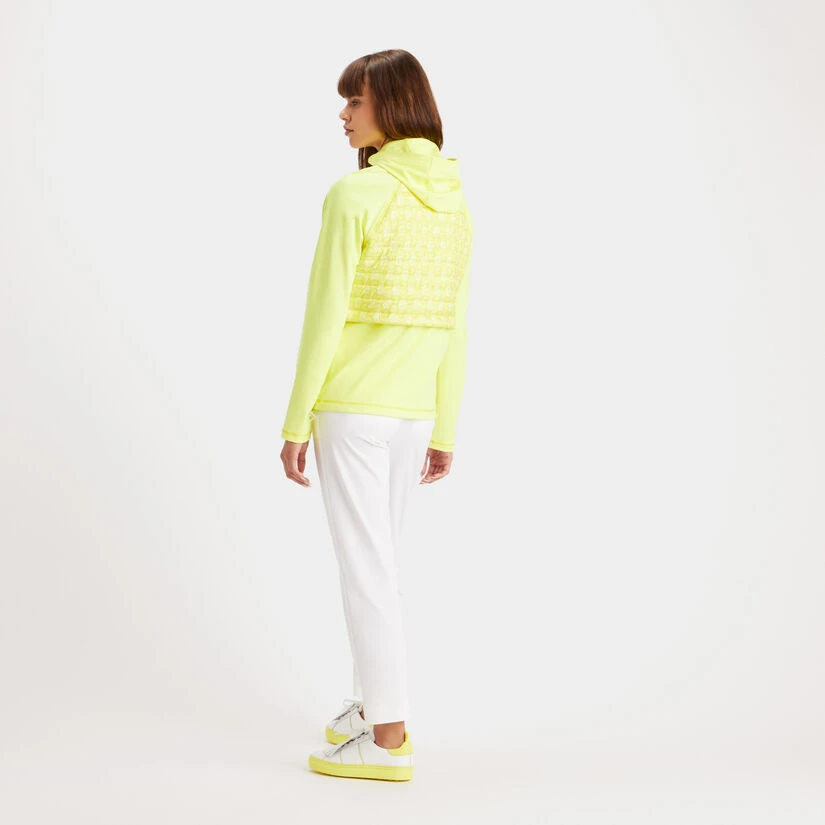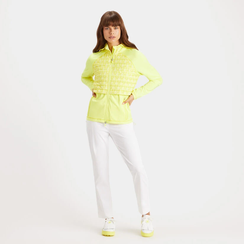 THIS HYBRID G’S TECH JERSEY PULLOVER JACKET FEATURES NYLON QUILTED TAFFETA FOR PREMIUM TEMPERATURE CONTROL, MOCK NECK AND HOOD, QUARTER LENGTH ZIPPER, AND BUNGEE PULLS FOR CUSTOMIZABLE PROTECTION AGAINST THE ELEMENTS. AN EXCEPTIONAL ALLY IN UNCERTAIN WEATHER, THIS JACKET WILL BE YOUR FAVOURITE GO-TO STYLE TO KEEP YOU WARM ON THE COURSE SO YOU CAN FOCUS ON YOUR GAME. G4LS23O58
