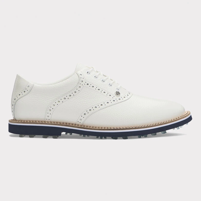 THE SADDLE GALLIVANTER IS OUR TAKE ON A CLASSIC GOLF STAPLE. CUSTOM DESIGNED BY OUR TEAM OF FOOTWEAR EXPERTS, THIS STYLE BOASTS AN ULTRA LIGHTWEIGHT SOLE COUPLED WITH A BESPOKE CLEAT DESIGN FOR OPTIMAL ON-COURSE TRACTION. IT SPORTS A WASHABLE AND ANTIMICROBIAL, TRIPLE DENSITY FOAM CUSHION FOOTBED FOR SUPERIOR COMFORT ALONG WITH COMFORT SYSTEM TECHNOLOGY WHICH ALLOWS AIRFLOW TO FEET AND PROVIDES THE ULTIMATE MASSAGE FOR YOUR SOLES. ADD THIS MODEL TO YOUR CLOSET TO COMPLETE A TIMELESS, SOPHISTICATED ON-COURSE LOOK. G4MS22EF04