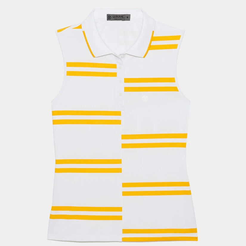 EVERYONE’S FAVOURITE STRIPED POLO IS BACK AND NOW AVAILABLE IN A SLEEVELESS STYLE! CATCH EYES ON THE COURSE IN THIS VIBRANT DESIGN WHILE KEEPING COOL AND CONFIDENT WITH BREATHABLE, MOISTURE WICKING, AND ANTIMICROBIAL FABRIC. G4LS23K680