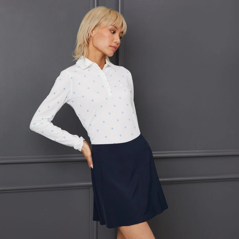 YOUR NEW FAVOURITE TOP IS THE TECH JERSEY LONG SLEEVE POLO. THIS CELESTIAL-INSPIRED PRINT MAKES THIS STYLE A STANDOUT. PAIR IT WITH OUR EFFORTLESS SKORT FOR A CHIC ON-COURSE LOOK. G4LS23K560