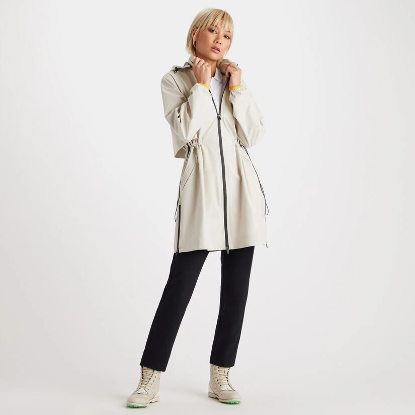 MEET THE ULTIMATE RAIN JACKET. DESIGNED WITH A TRIPLE LAYER NYLON SHELL THIS STYLE BOASTS A STORM VENT, ELEVATED NECKLINE, AND AQUAGUARD WATERPROOF ZIPPERS, SO YOU’RE READY FOR ANY WEATHER CONDITIONS. THIS STYLE ALSO FEATURES A REMOVABLE HOOD, SIDE VENTS, AND BUNGEE CORDS AT THE HOOD AND WAIST FOR A TAILORED FIT SUITABLE FOR YOUR EVERYDAY. G4LS23O60